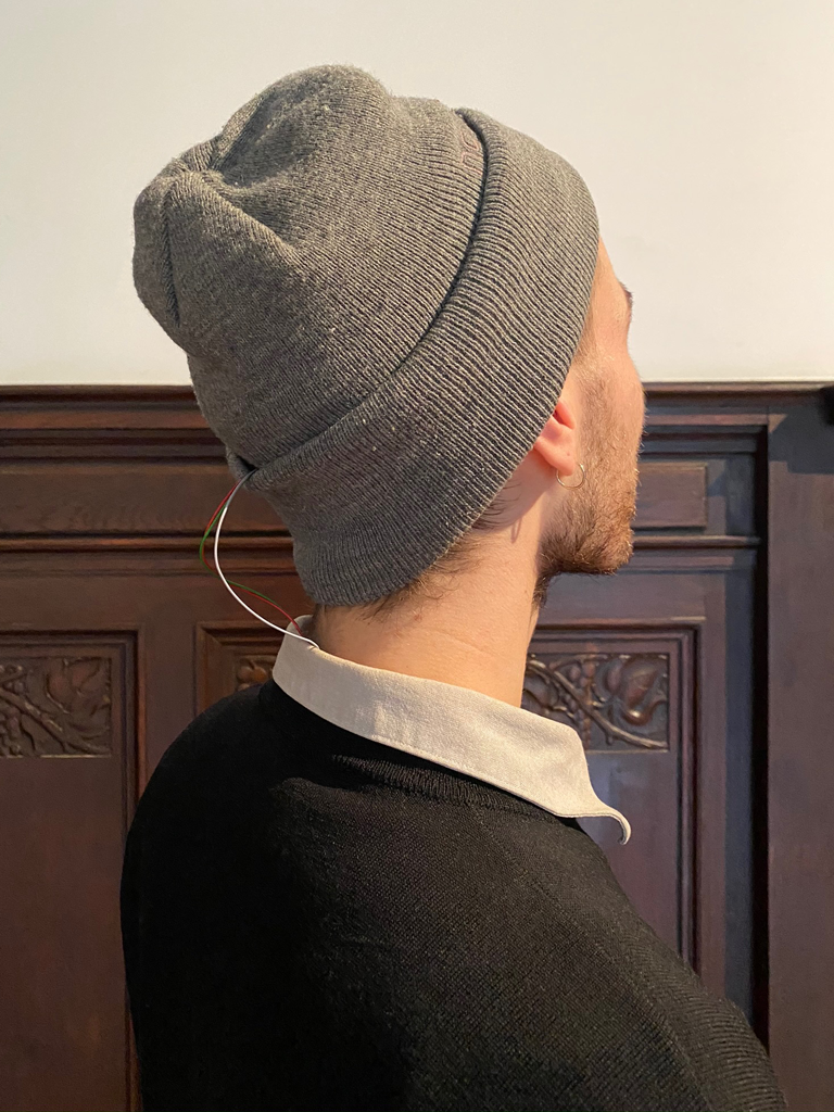 Fridolin trained a model to predict the next direction the dancing lead is going to take with his or her next step. He used a very short sequence to pass only the initial movement of the foot to the model, which then could light up the LEDs on his head to indicate if he was going to turn left or right to his dancing partner.