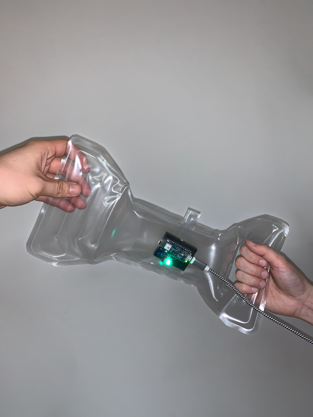 Like So-Jin and Christina, Jonas experimented on a new type of controller, that the designer can train to detect different types of motion. By cushioning the controller with memory foam he played with the idea of creating new types of interactions like throwing the controller away, on the floor, or against a wall.
